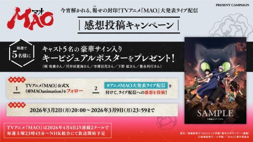 「今宵解かれる、報せの封印!TVアニメ『MAO』大発表ライブ配信」の感想投稿キャンペーンを開催!